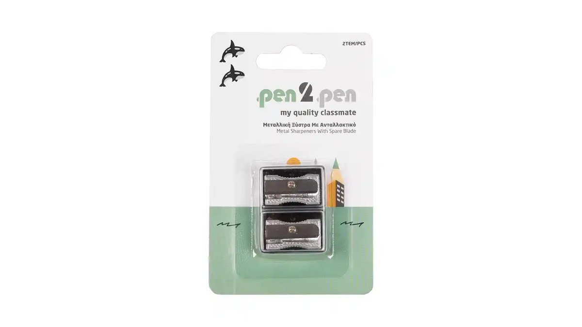 Pen 2 Pen Ξύστρα Μεταλλική Σε Κουτί + Ανταλλακτικό Blister 2τεμ.