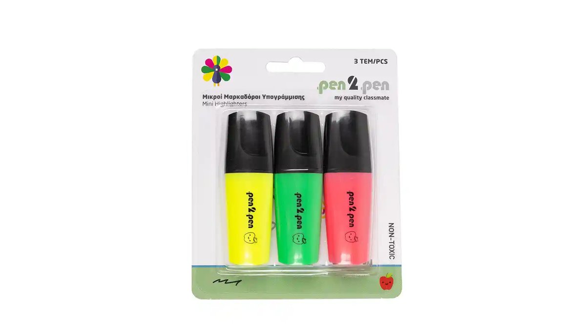 Pen 2 Pen Μίνι Μαρκαδόροι Υπογράμμισης Blister 3τεμ.