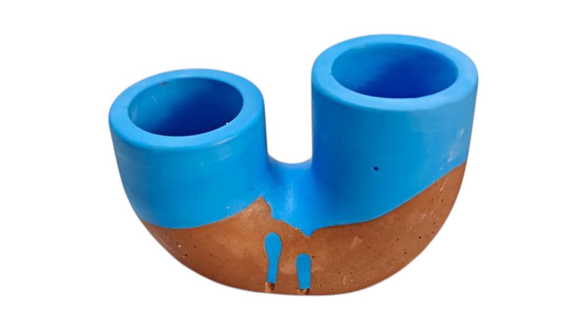 Χειροποίητο Διπλό Κηροπήγιο Πορσελάνης Μπλε - Teracota