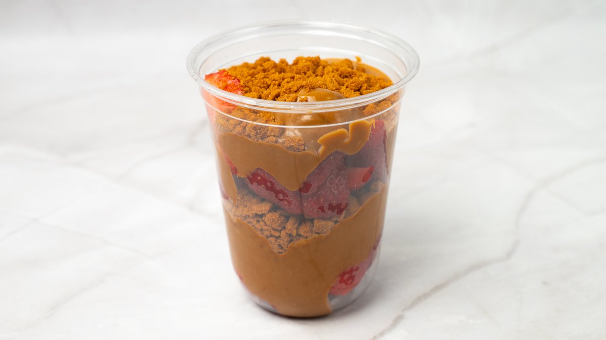 Με πραλίνα biscoff, μπισκότο biscoff κσι φράουλες