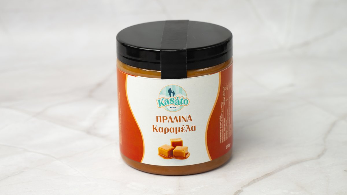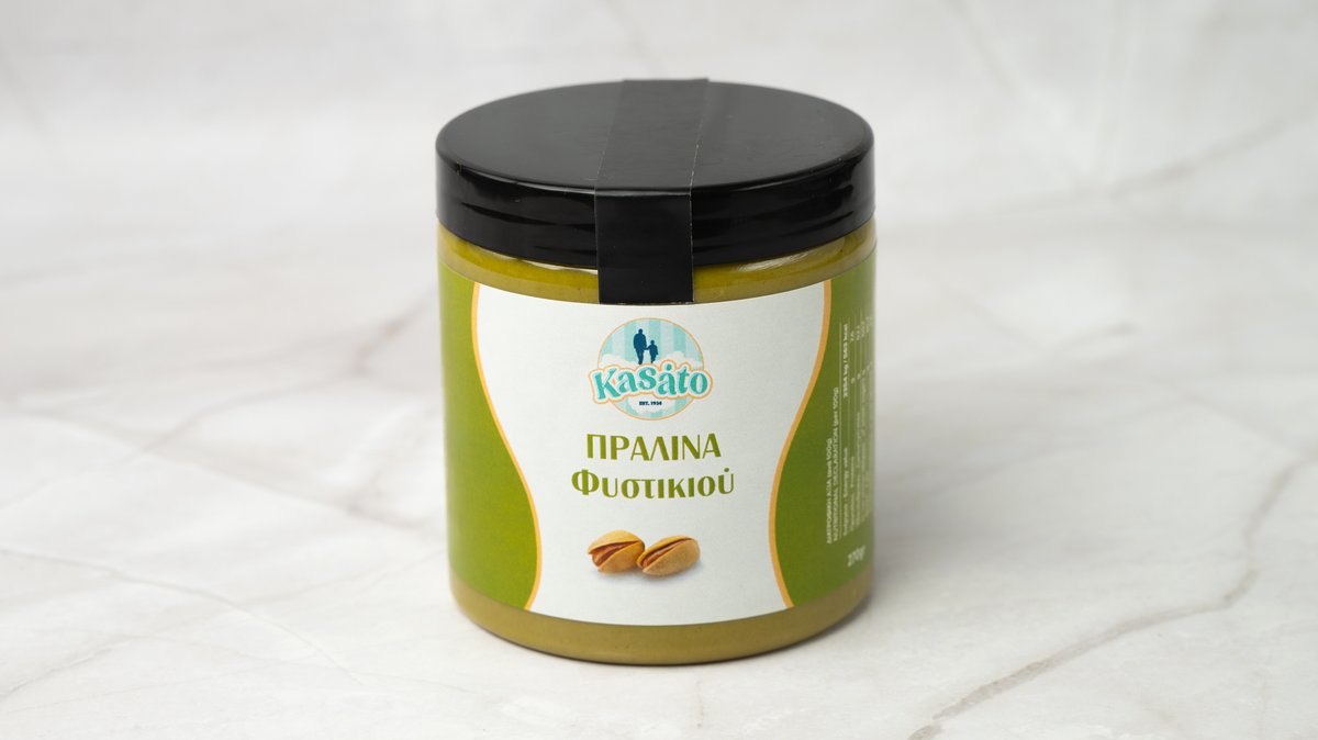 Με φυστίκι Αιγίνης, κανταΐφι και κρέμα τυριού. Σερβίρεται με πραλίνα της επιλογής σου