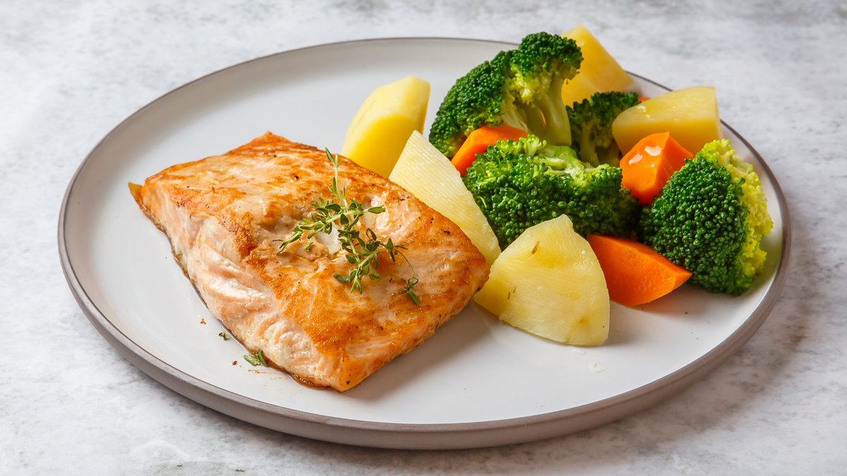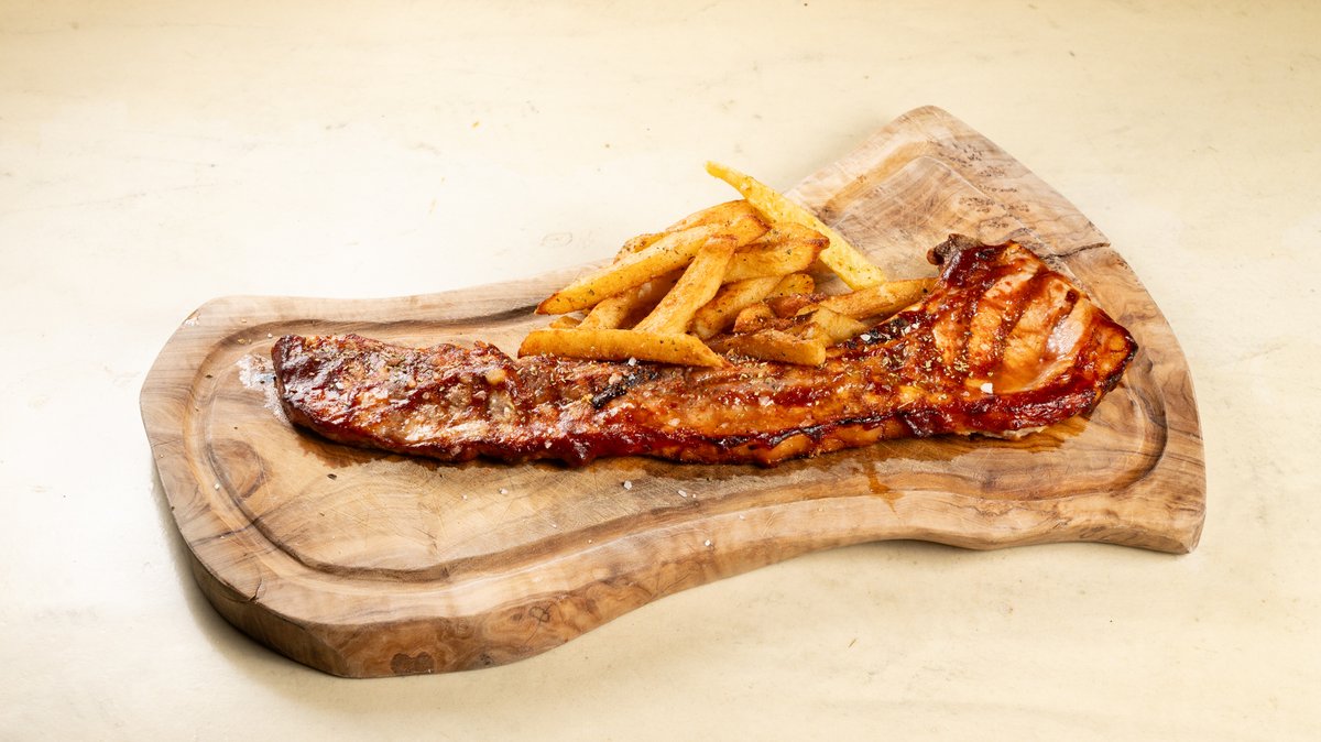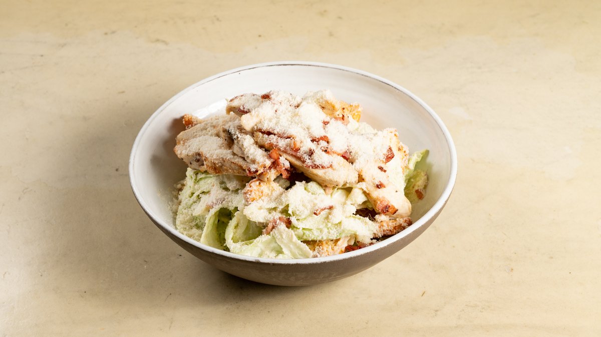 With sweet and spicy sauce, green salad and cherry tomatoes