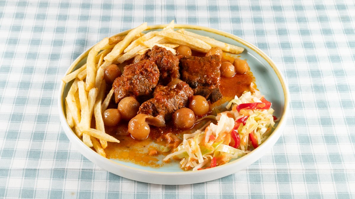 With 100% beef burger, caramelized onion, bacon, fried egg, iceberg, tomato, manavaki sauce and bbq sauce. Served with french fries