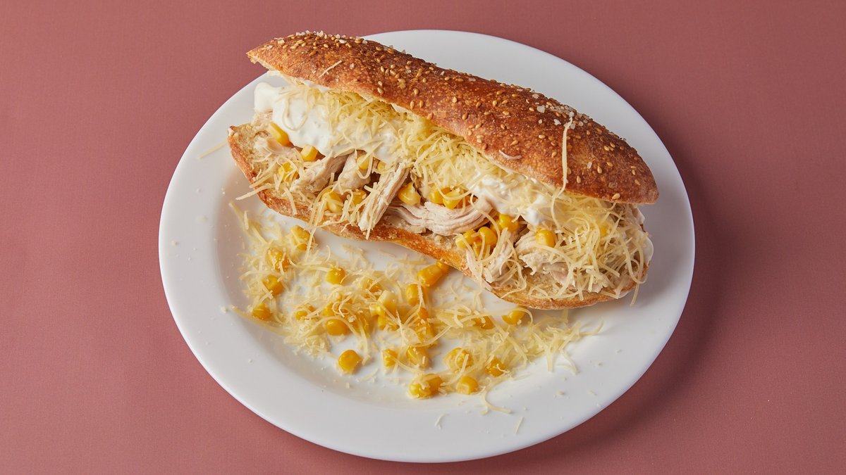 Με κοτόπουλο ψίχα, καλαμπόκι, regato και λευκή sauce