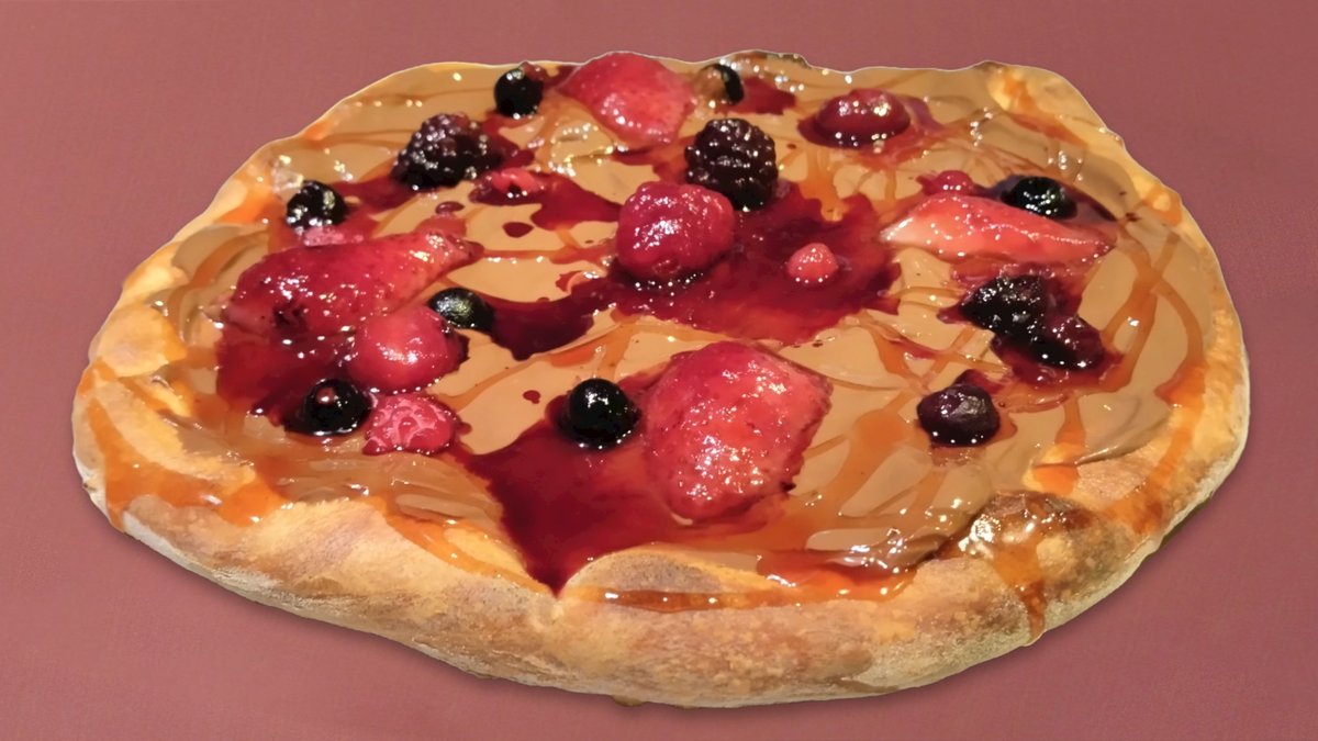 Πίτσα Γλυκιά με Μερέντα Φρούτα του Δάσους και Σιρόπι Φράουλας