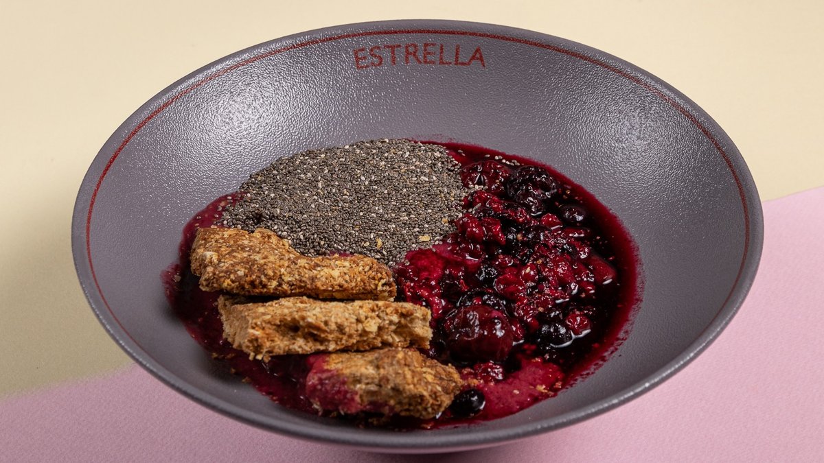 Με κόκκινα φρούτα, μπανάνα, μέλι και γάλα