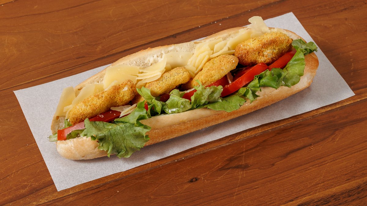 Μπαγκέτα Λευκή με Κοτόπουλο , flakes παρμεζάνας, Μαρούλι , Ντομάτα , Μαγιονέζα