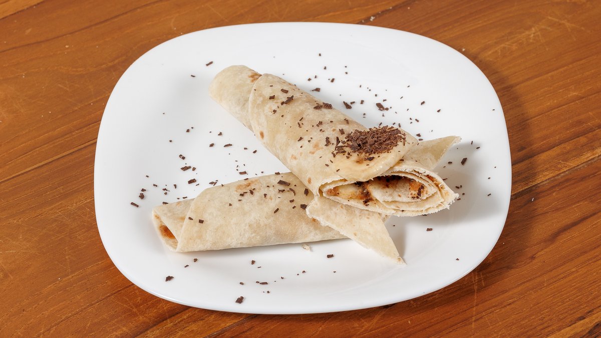 Τορτίγια γλυκιά με φυστικοβουτυρο , μπανάνα , και μαύρη σοκολάτα