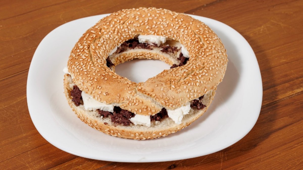 Κουλούρι Θεσσαλονίκης με πάστα ελιας και φέτα τυρι