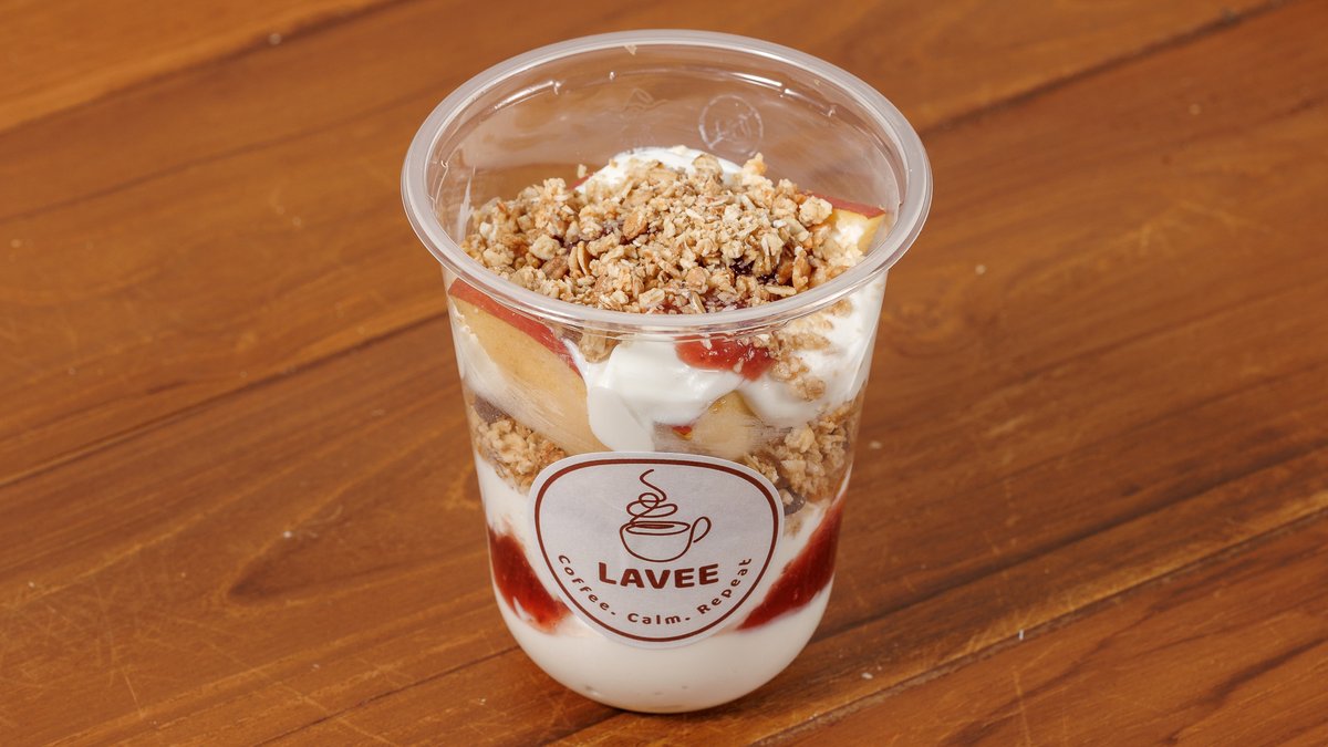 Γιαούρτι με μαρμελαδα φράουλα ,γκρανολα και φρούτο εποχής