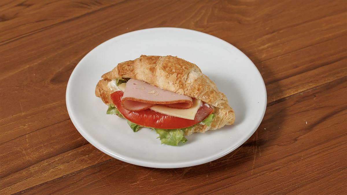 Μίνι κρουασανακι με γαλοπούλα,γκούντα,ντομάτα,μαρούλι, μαγιονέζα