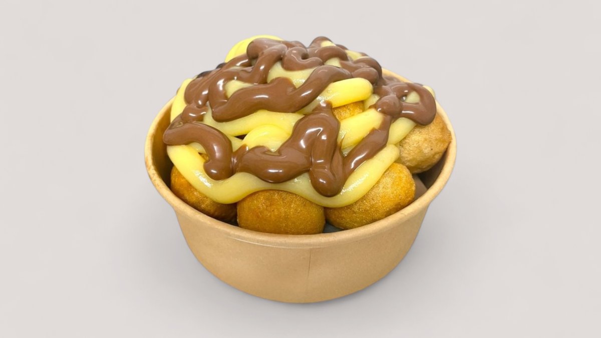 12 Τεμάχια. Λουκουμάδες με κρέμα κάστανο γαρνιρισμένο με λευκή κρέμα