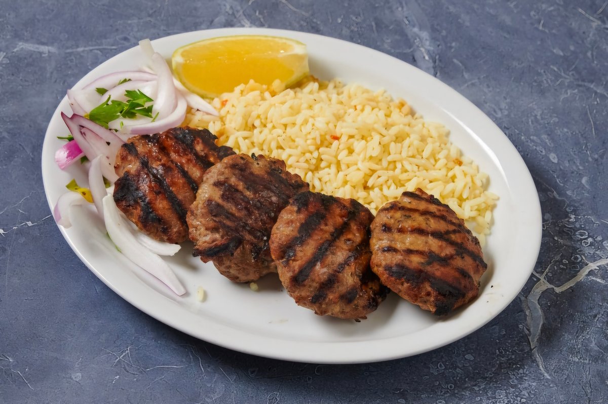 Μπιφτεκάκια σχάρας γαρνιρισμένα με ρύζι