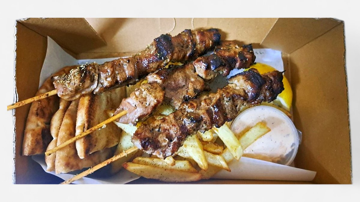 3 τεμάχια σουβλάκια χοιρινά, πατάτες, 1 πίτα