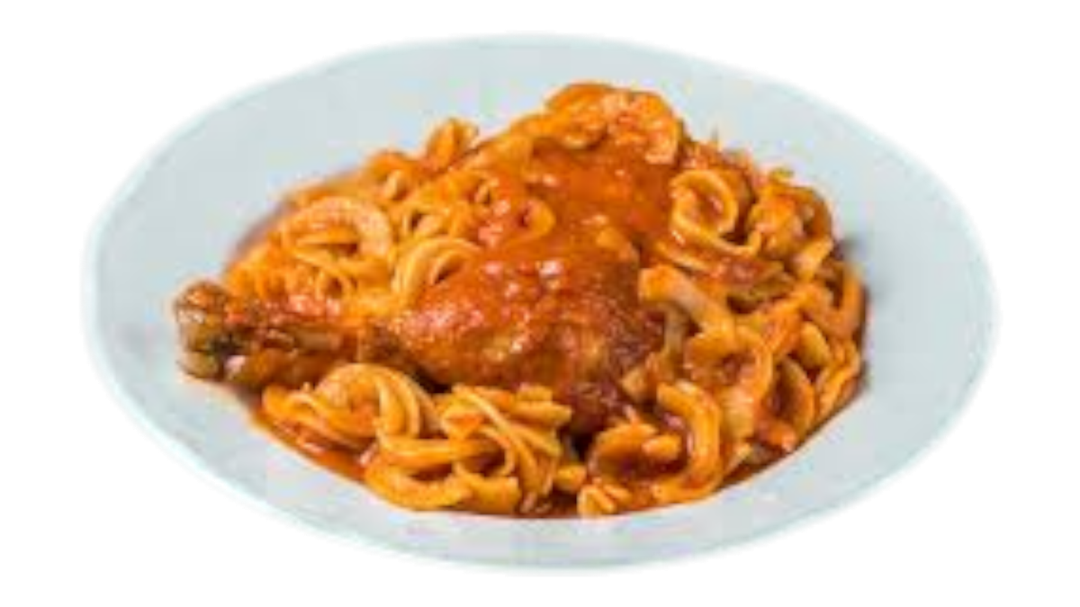 Μακαρόνια ναπολιτέν a la Italiana (γίνεται ένα πέρασμα στο τηγάνι και η ναπολιτέν αναμιγνύεται με τα μακαρόνια)