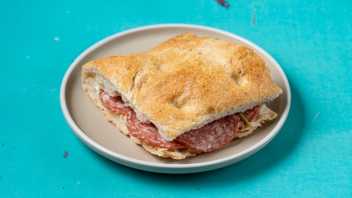 Με σαλάμι αέρος, τυροσαλατα, ντομάτα και ρόκα