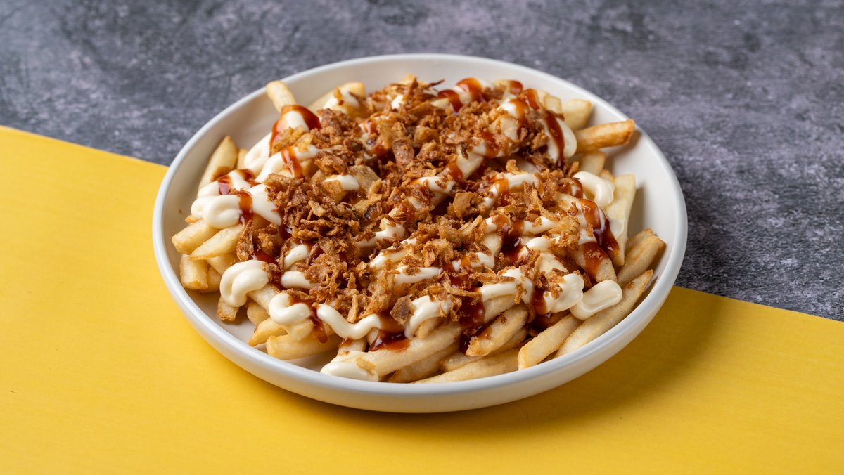 Μερίδα Έξτρα Τραγανές Πατάτες με Flakes Κρεμμυδιού, Μαγιονέζα και Ketchup