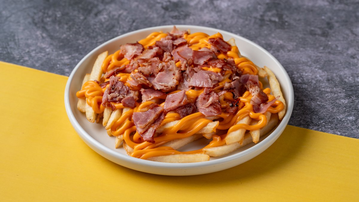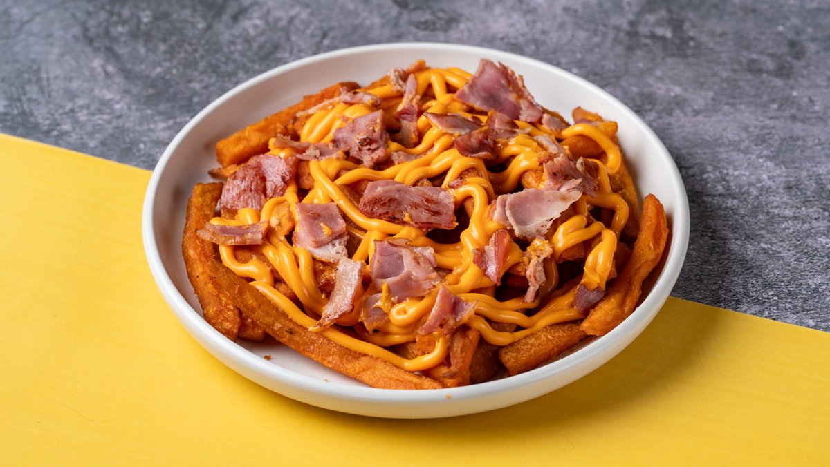 Μερίδα Έξτρα Τραγανές Πατάτες με Cheddar Sauce και Κομματάκια Τραγανού Μπέικον