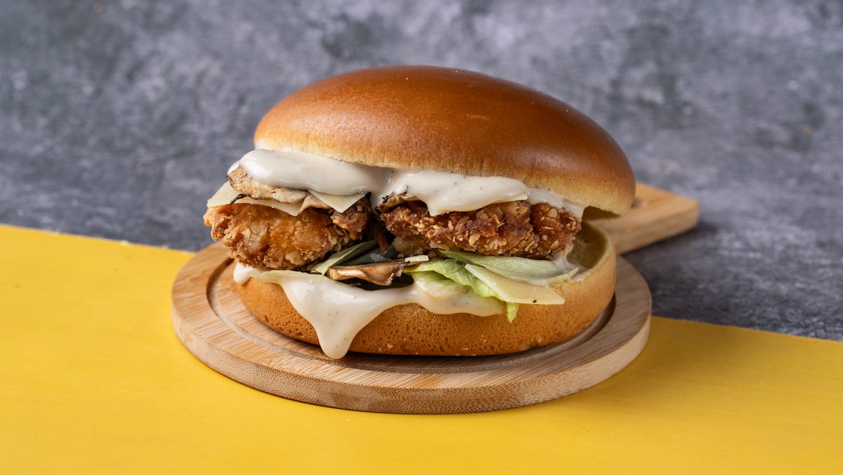 Αφράτο brioche ψωμάκι με 2 chicken fillets μαριναρισμένα και παναρισμένα με τη μυστική μας συνταγή, τραγανό iceberg, flakes παρμεζάνας, σοταρισμένα μανιτάρια και μαγιονέζα τρούφας