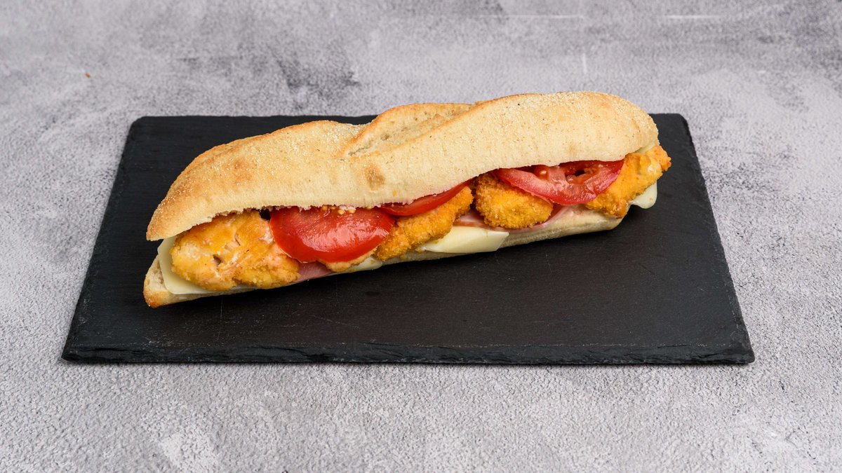 Χωριάτικο Ψωμάκι Μοτσαρέλα Μπέικον Κοτόπουλο Πανέ Ντομάτα