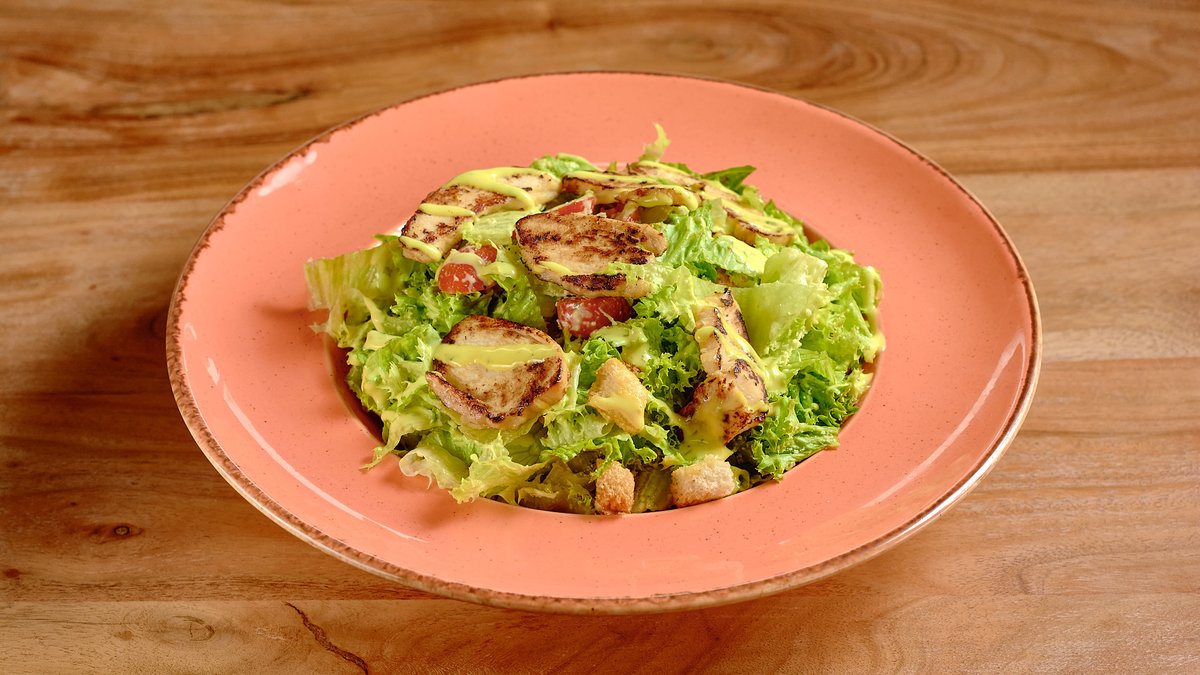 Με κοτομπουκιές 130g, παρμεζάνα τριμμένη, μπέικον, ντομάτα, τυρί κρέμα και Caesar`s sauce. Συνοδεύεται από γαρνιτούρα της επιλογής σου