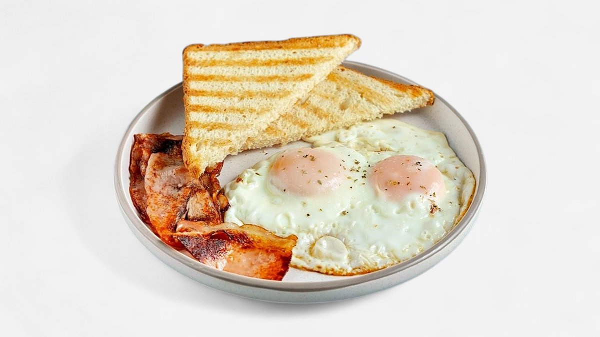 2 Τεμάχια. Συνοδεύεται από μπέικον και ψωμί φρυγανισμένο