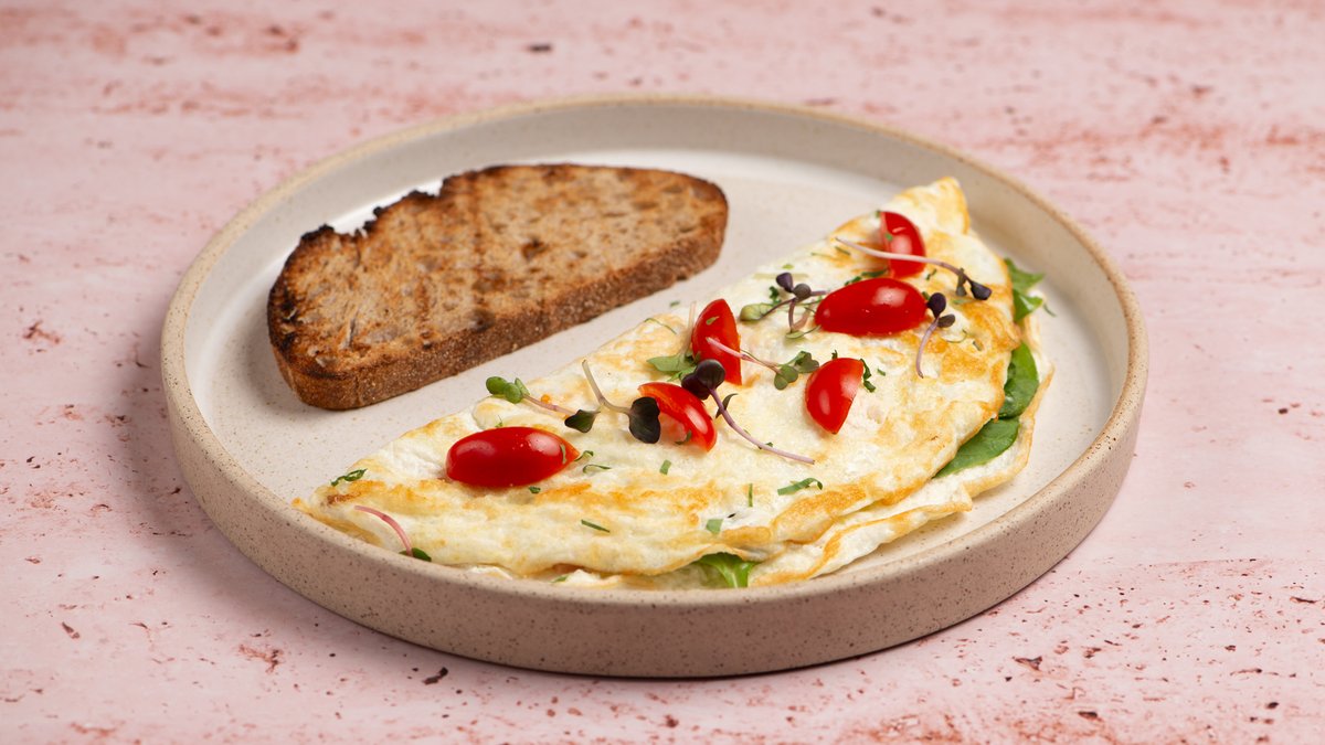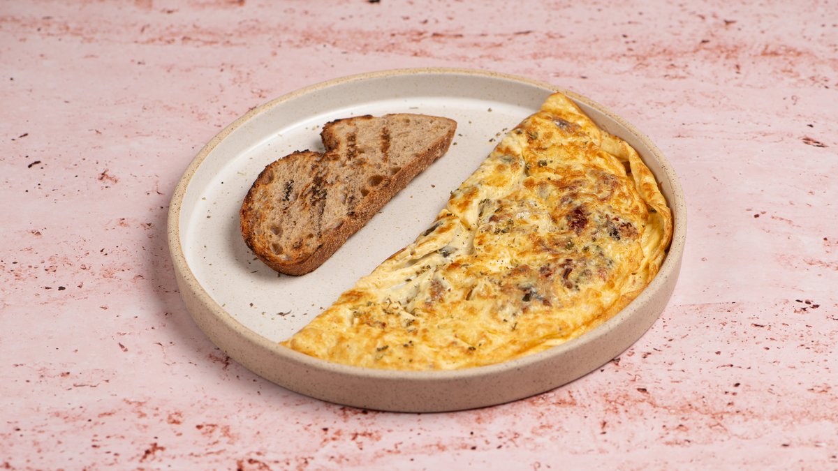 3 Αυγά. Με λιαστή ντομάτα, πιπεριά, μανιτάρια και φέτα