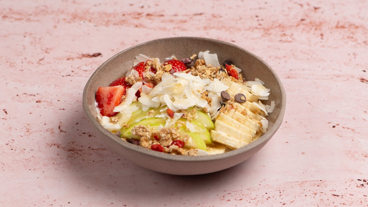 Με γιαούρτι, φυστικοβούτυρο, φρούτα εποχής, μέλι, flakes καρύδας, granola με mix αποξηραμένων φρούτων και κομματάκια σοκολάτας