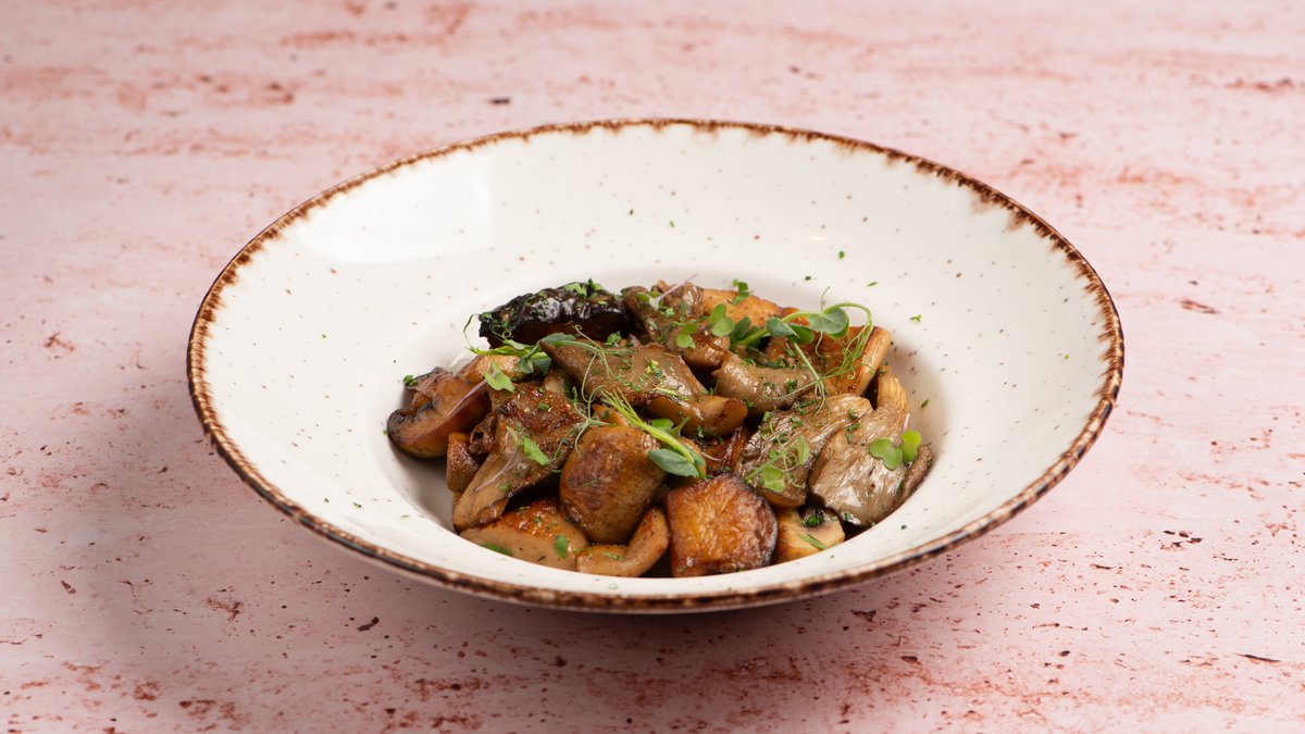 Με μανιτάρια, λιαστή ντομάτα, λάδι τρούφας, χυμό lime και σκόρδο