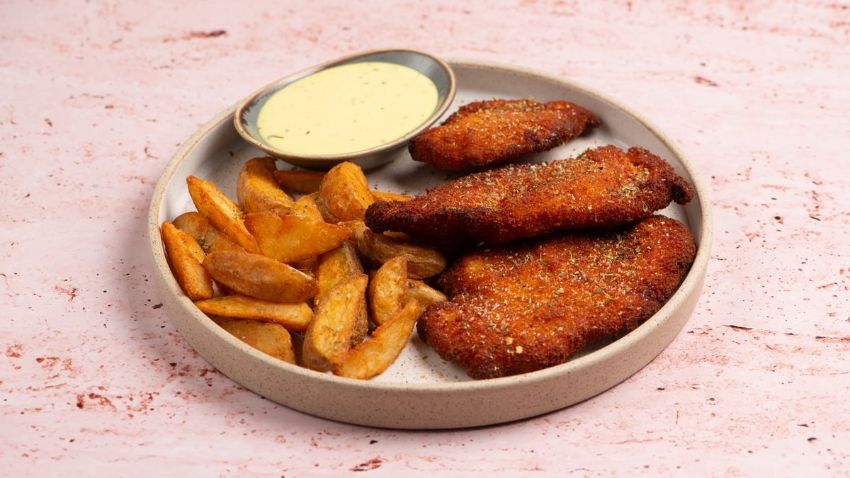 Με κοτόπουλο πανέ, μαρούλι, ντομάτα, cottage cheese και ceasar's sauce. Συνοδεύεται από πατάτες country