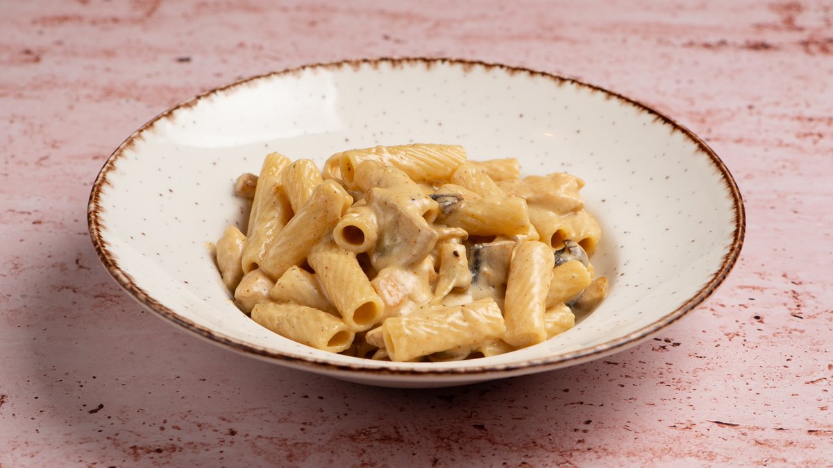 Με φιλετάκια κοτόπουλο, μανιτάρια, μπέικον, σάλτσα napoli και κρέμα γάλακτος
