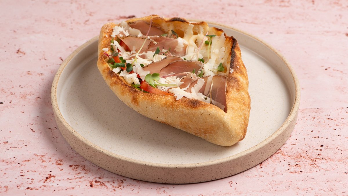 Με χοιρομέρι Τήνου, τυρί τριμμένο, ρόλα και σάλτσα ντομάτας