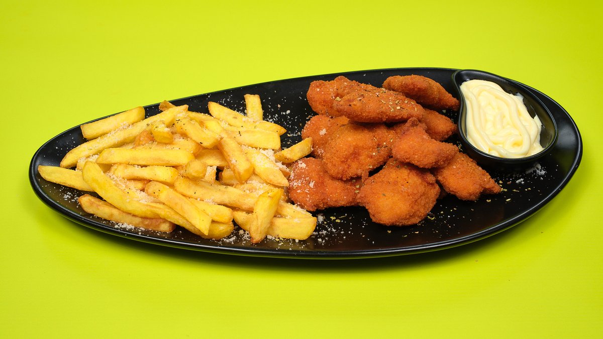 9 Τεμάχια. Συνοδεύεται από πατάτες τηγανητές και dip ketchup