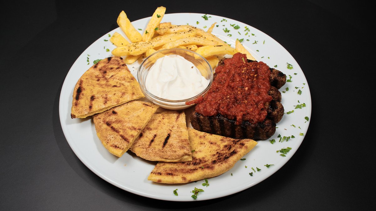 Με χειροποίητο κεμπαπάκι, γιαούρτι, πικάντικη σάλτσα ντομάτας, τραγανές πιτούλες με έξτρα παρθένο ελαιόλαδο