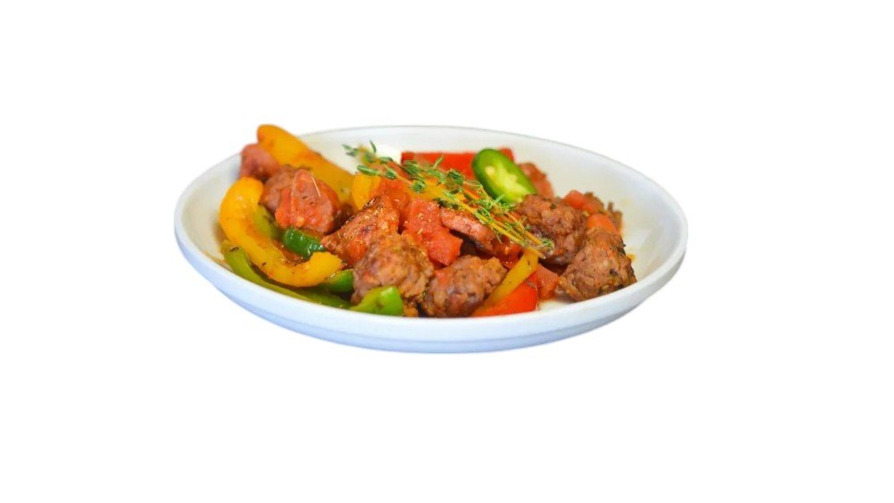 Με τομάτα, αγγούρι, πιπεριά, κρεμμύδι, ελιές παραγωγής μας και φέτα Τριπόλεως