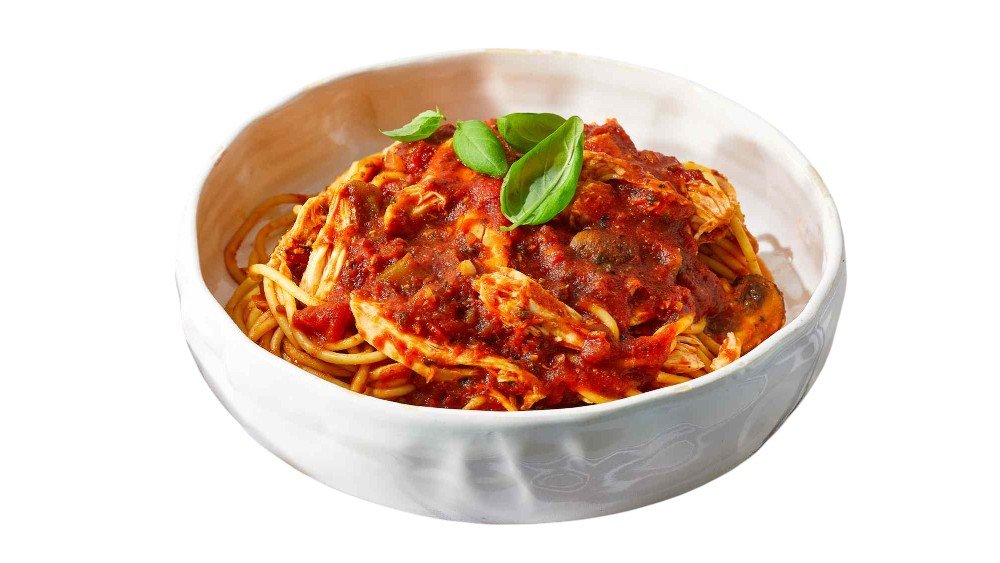 Με παραδοσιακή ιταλική σάλτσα ντομάτας, κιμά, καρότο, κρεμμύδι, σέλερι και κόκκινο κρασί. Συνοδεύεται από dip παρμεζάνας
