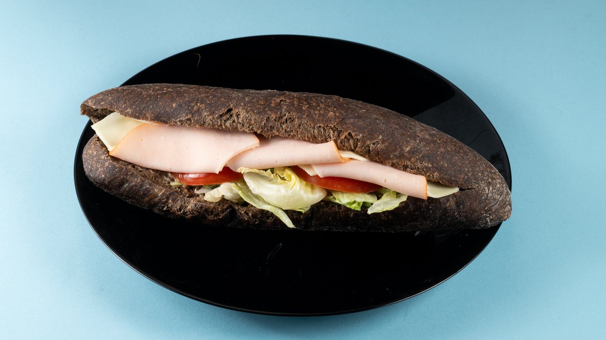 Με gouda, γαλοπούλα, ντομάτα, μαρούλι και μαγιονέζα