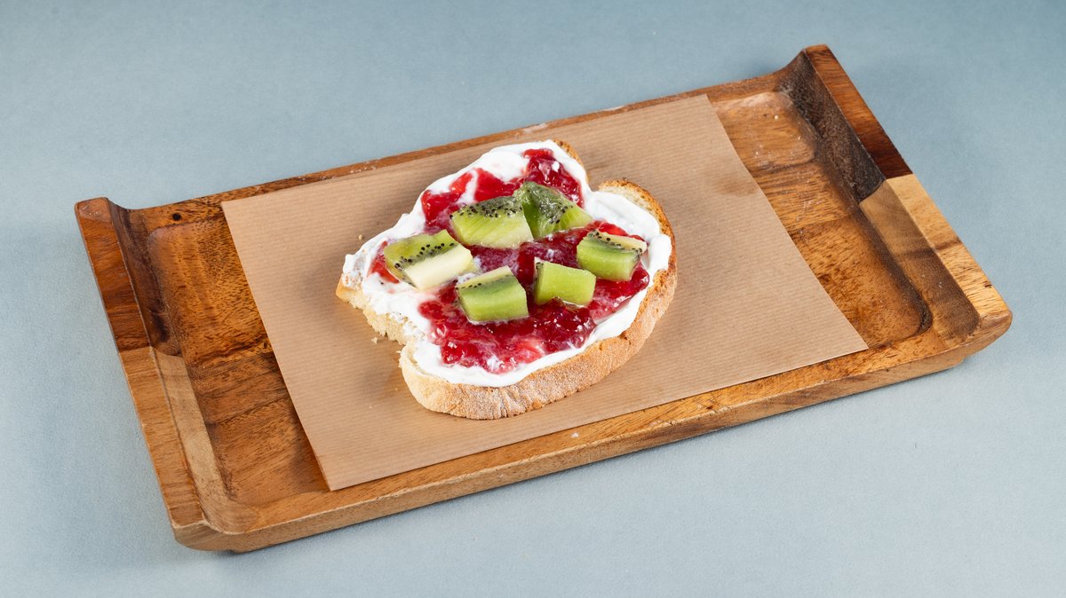Με 2 φέτες κέικ χειροποίητο, 1 αλμυρό κρουασάν mini της επιλογής σου, 1 mini κρουασάν με σοκολάτα και 2 φρυγανισμένες φέτες τοστ με άλειμμα της επιλογής σου