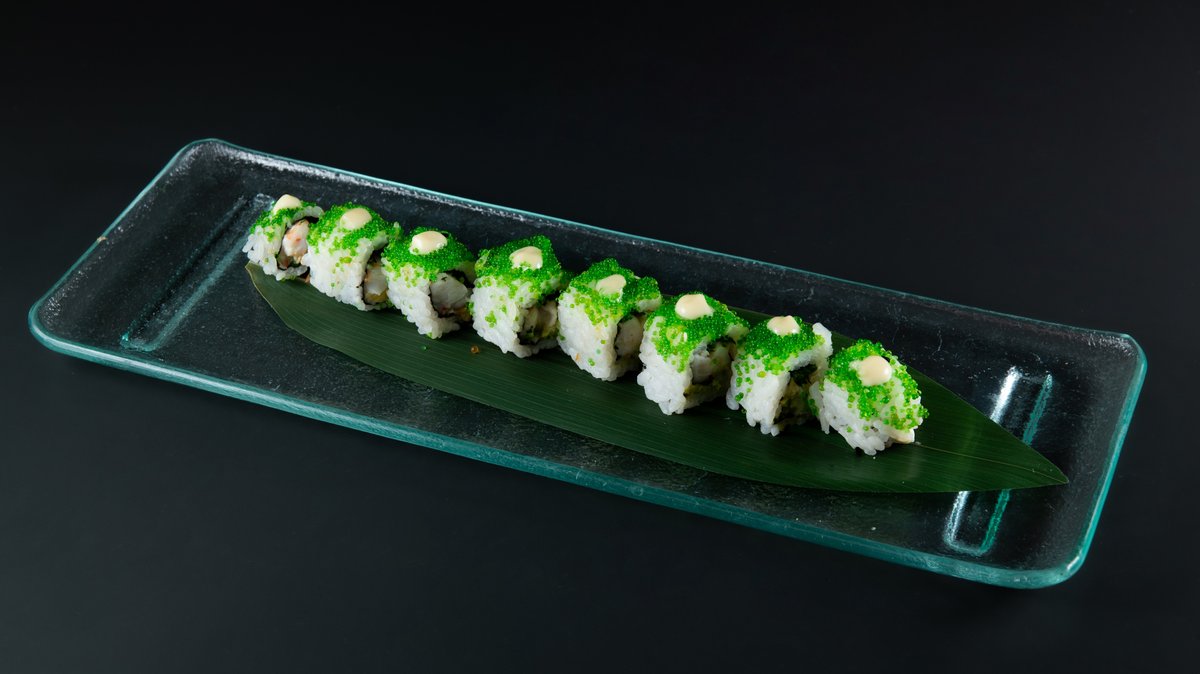 8 τεμάχια. Γαρίδα βραστή, σχοινόπρασο, αβοκάντο, μαγιονέζα γιούζου,και τομπίκο γουασάμπι