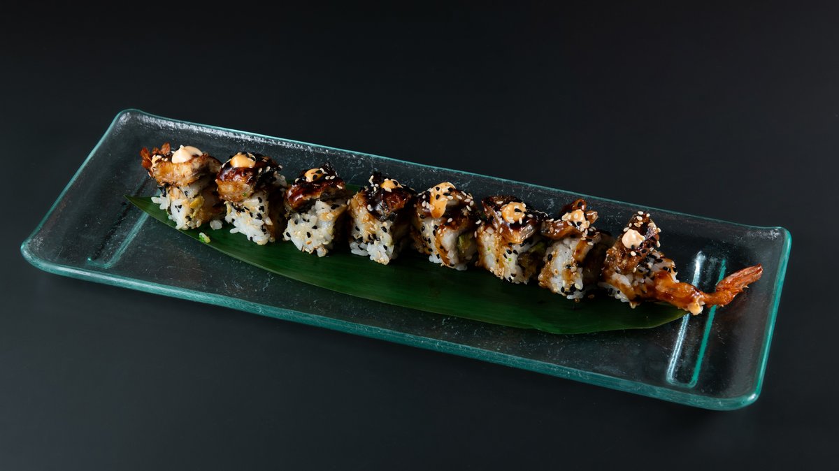 8 τεμάχια. Xέλι, γαρίδα tempura, αβοκάντο και spicy mayo