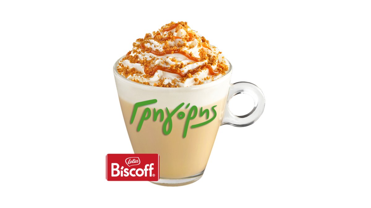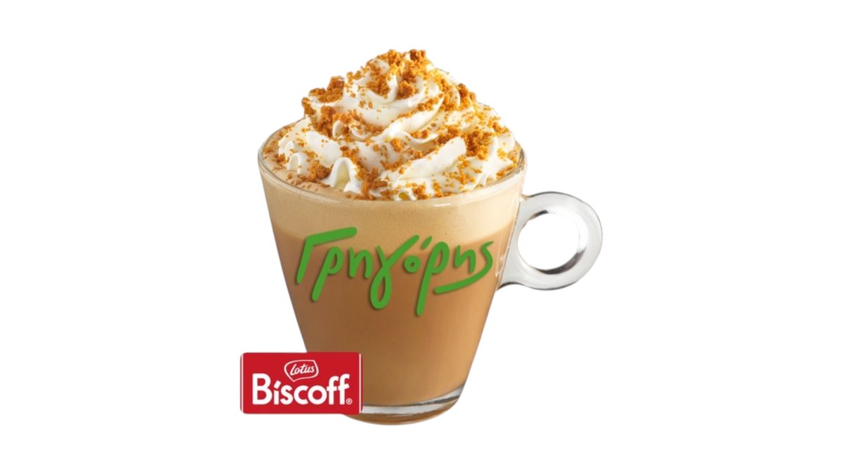 Delicious festive latte with one shot of espresso, syrup and crushed Lotus Biscoff® biscuit and whipped cream – the sweetest choice for your Christmas moments!