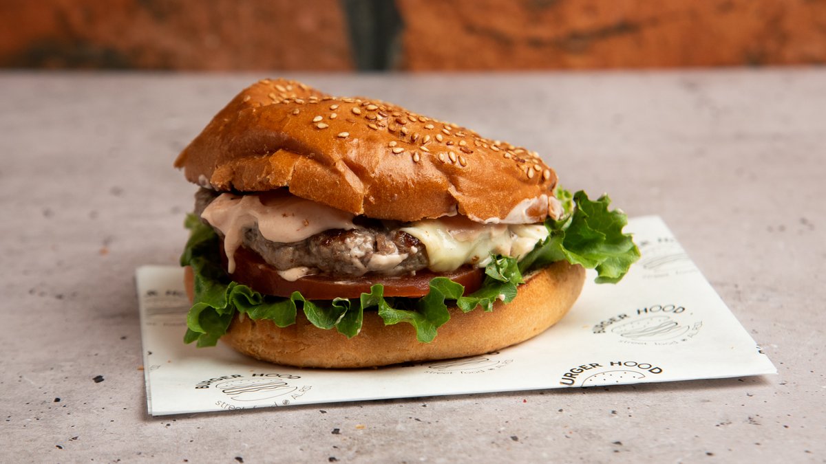 Με 100% μοσχαρίσιο μπιφτέκι 110g, μπέικον, καραμελωμένα κρεμμύδια, ντομάτα, κρέμα cheddar, μαγιονέζα και honey mustard sauce