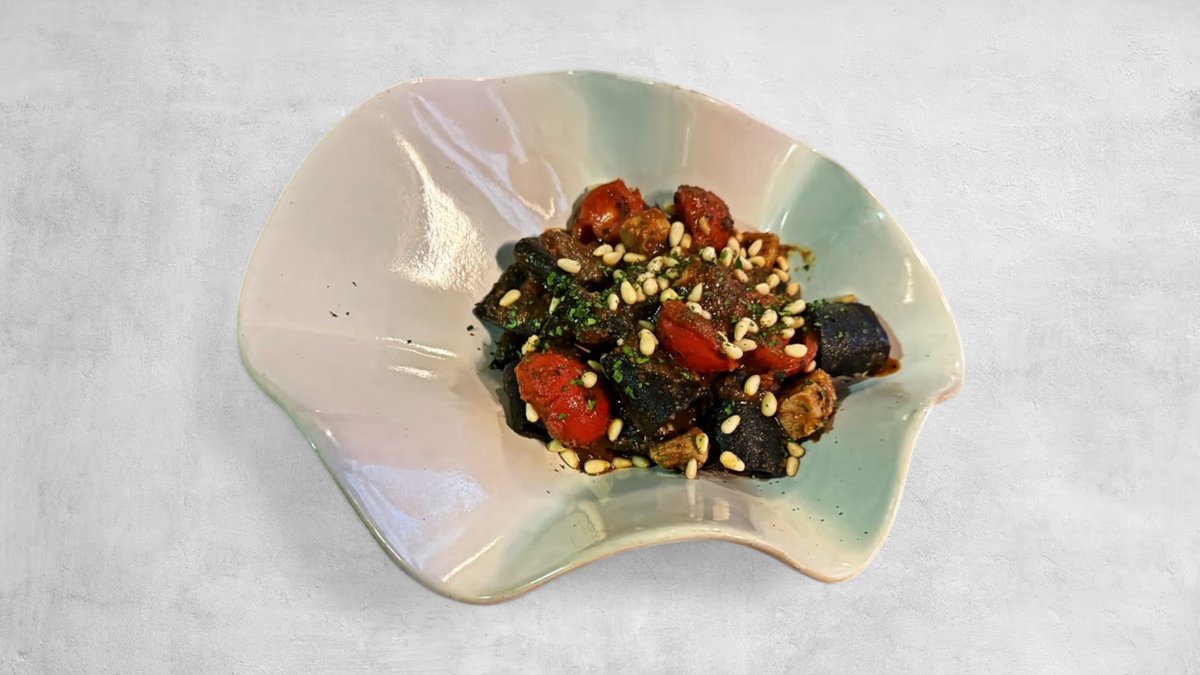 Crni pakeri sa sviježom tunom u umaku od peata od crnih maslina, cherry rajčica i pinjolima