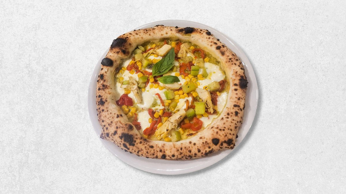 Rajčica San Marzano, mozzarella fior di latte, prosciutto cotto, kukuruz, bosiljak, ekstra djevičansko maslinovo ulje