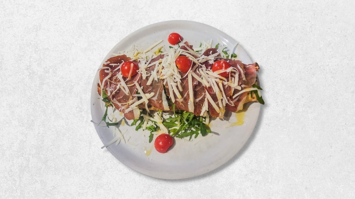 San Daniele pršut, mozzarella fior di latte, Grana Padano, rukola, cherry rajčica *slika je simbolična