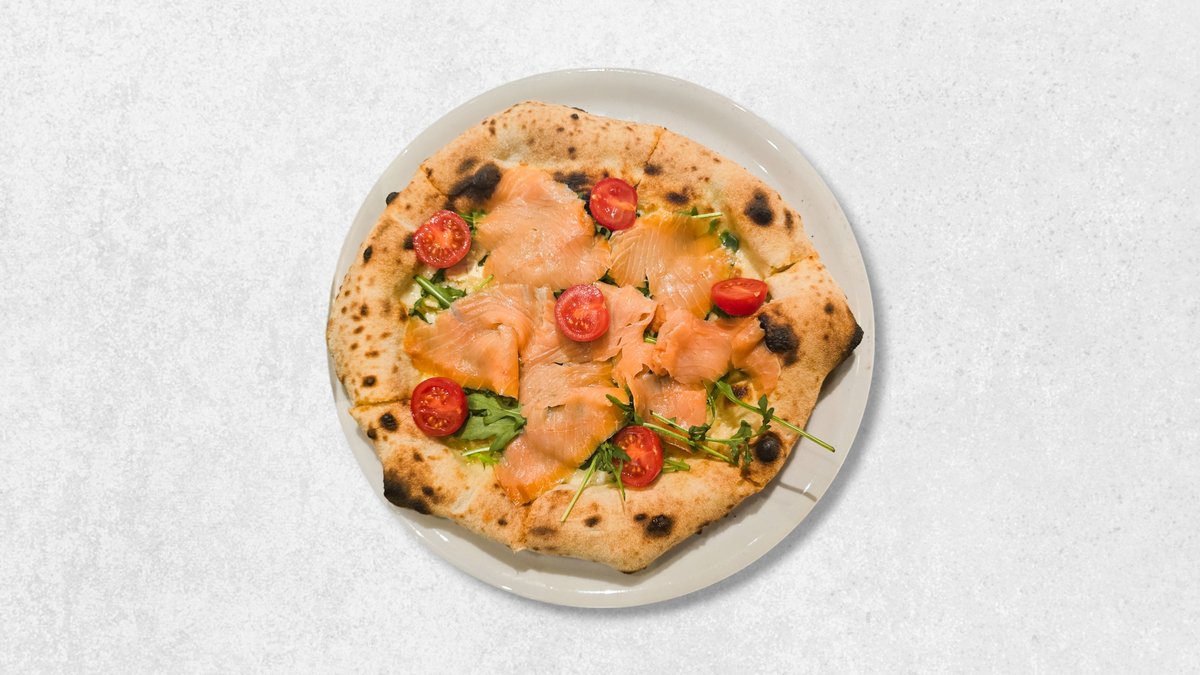 Mozzarella fior di latte, brie, rukola, dimljeni losos, cherry rajčica, bosiljak, ekstra djevičansko maslinovo ulje