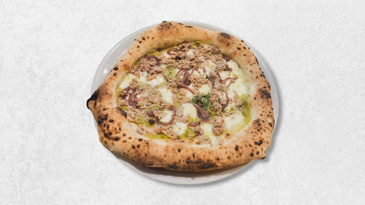 Krema od šparoga, mozzarella fior di latte, tunjevina, karamelizirani luk, bosiljak, ekstra djevičansko maslinovo ulje