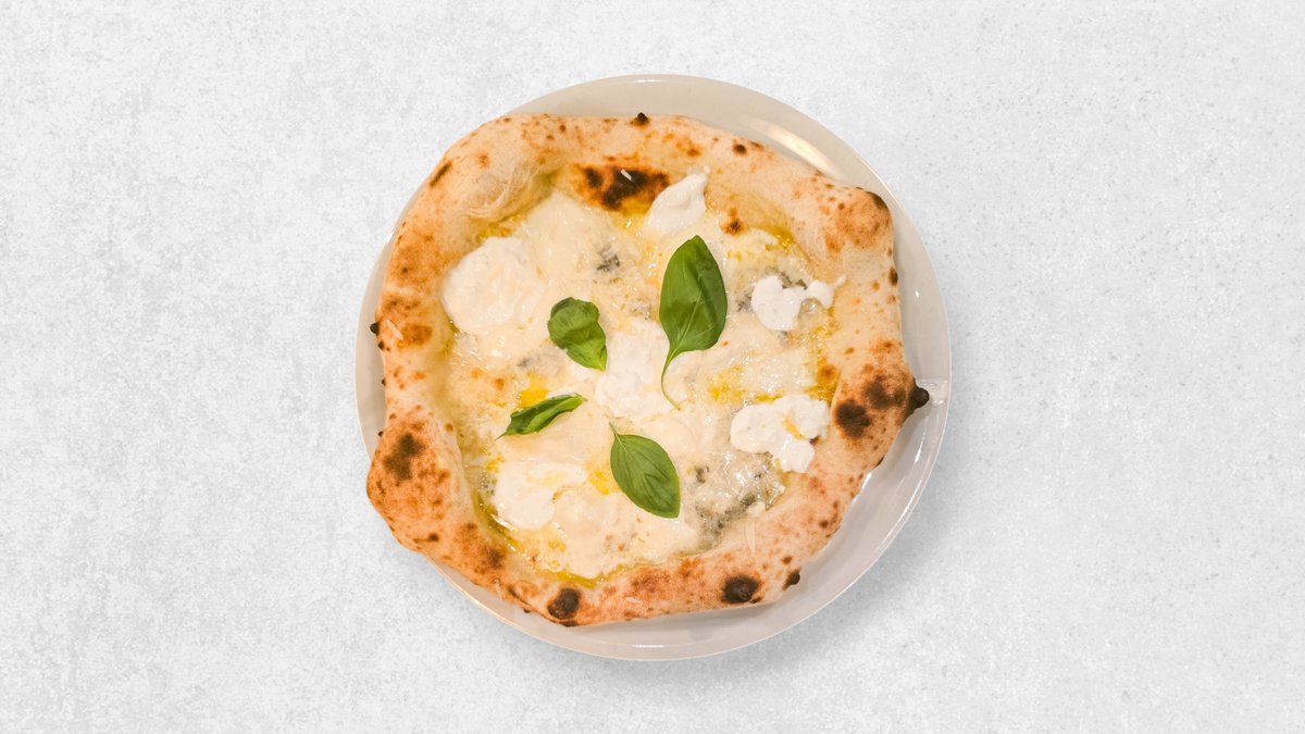 Mozzarella fior di latte, gorgonzola, gouda, Grana Padano, stracciatella, bosiljak, ekstra djevičansko maslinovo ulje