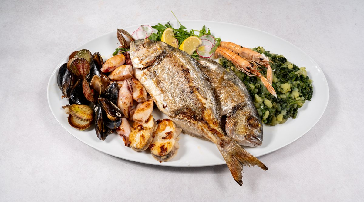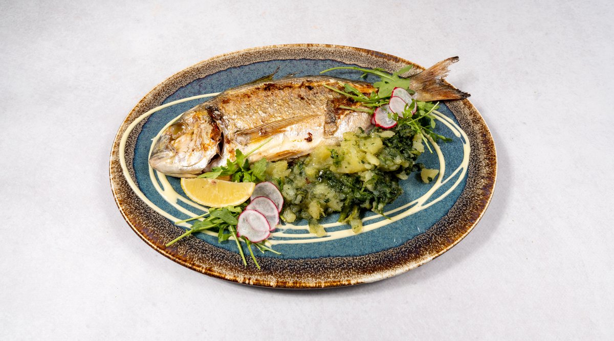Jadranska riba na žaru, blitva i krumpir, porcija
