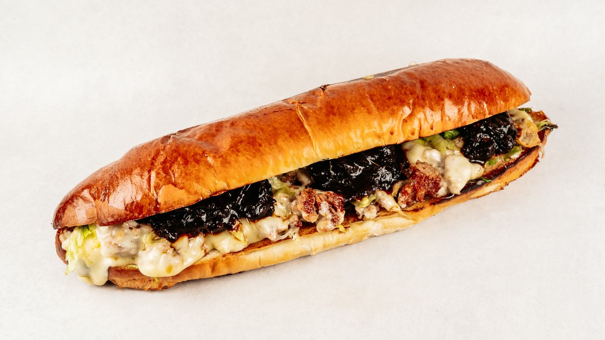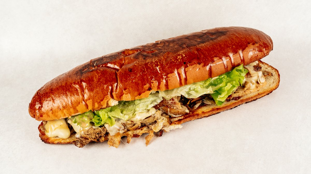 Grill mortadela, gouda, gljive, Vepar umak, brioche pecivo